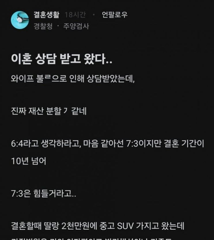 유머와이프 ㅂ륜 때문에 이혼하는데 재산분할 6:4래...위키뉴스 기자입력북마크공유가글자크기프린트댓글 와이프 불륜 때문에 이혼하는데 재산분할 6:4래... 위키뉴스 기자[email protected]카카오톡페이스북트위터밴드URL복사