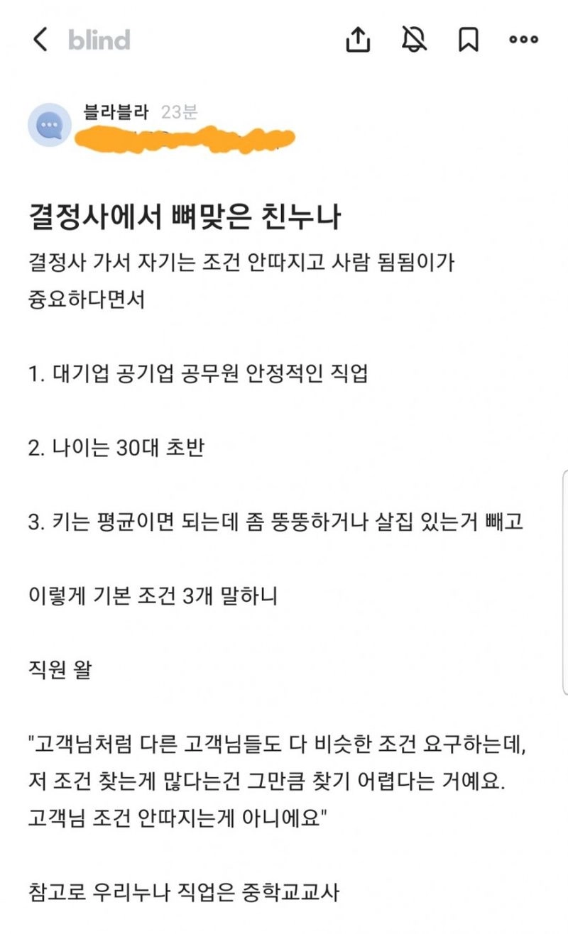 리와인드뉴스결정사에서 뼈 맞ㅇ 친누나위키뉴스 기자입력북마크공유가글자크기프린트댓글 결정사에서 뼈 맞ㅇ 친누나 위키뉴스 기자[email protected]카카오톡페이스북트위터밴드URL복사