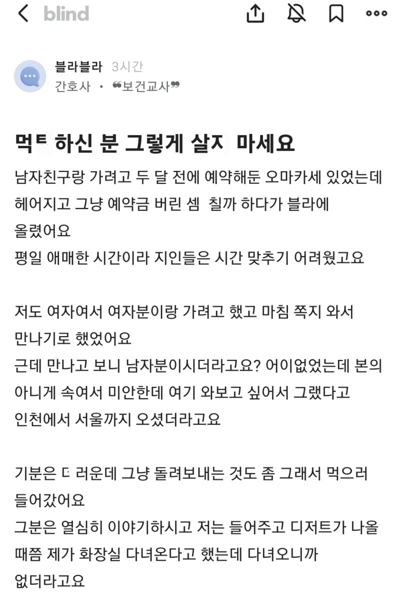 유머먹ㅌ하신분 그렇게 살ㅈ마세요 (+댓글)위키뉴스 기자입력북마크공유가글자크기프린트댓글먹ㅌ하신분 그렇게 살ㅈ마세요 (+댓글) 위키뉴스 기자[email protected]카카오톡페이스북트위터밴드URL복사