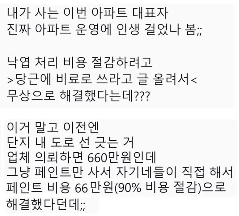 리와인드뉴스이번 아파트 대표자 진짜 아파트 운영에 인생 걸었나 봄 ㄷㄷ위키뉴스 기자입력북마크공유가글자크기프린트댓글 이번 아파트 대표자 진짜 아파트 운영에 인생 걸었나 봄 ㄷㄷ 위키뉴스 기자[email protected]카카오톡페이스북트위터밴드URL복사