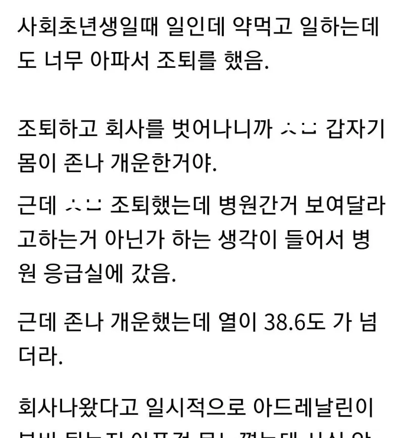 유머예전에 너무 아파서 회사 조퇴를 했었음위키뉴스 기자입력북마크공유가글자크기프린트댓글예전에 너무 아파서 회사 조퇴를 했었음위키뉴스 기자[email protected]카카오톡페이스북트위터밴드URL복사
