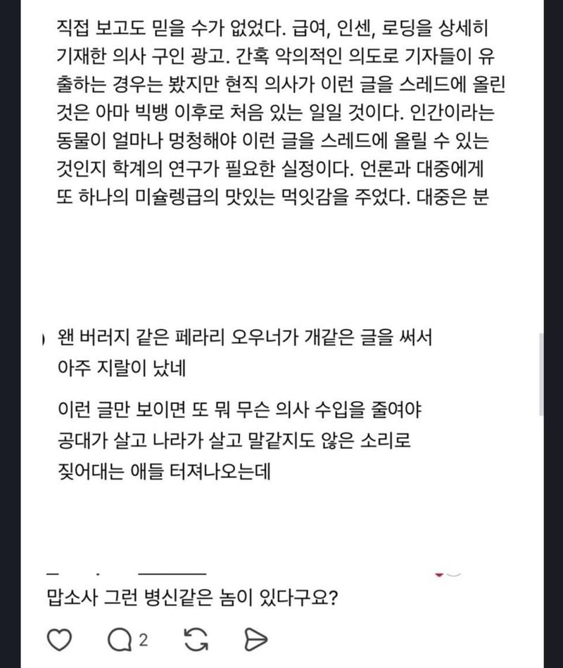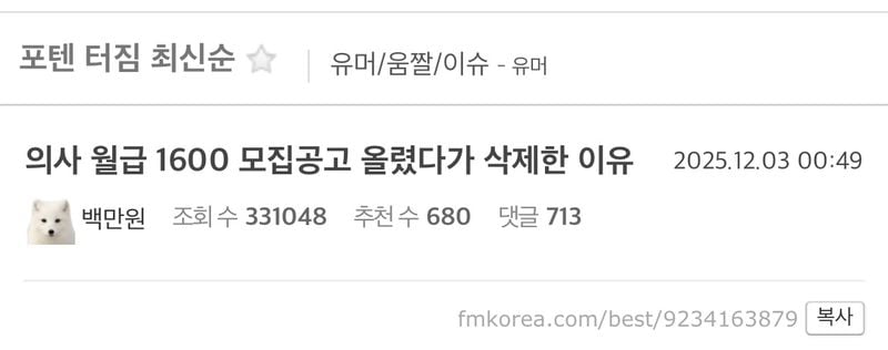 유머의사 월급 1600 모집공고 올렸다가 삭제한 이유위키뉴스 기자입력북마크공유가글자크기프린트댓글의사 월급 1600 모집공고 올렸다가 삭제한 이유 위키뉴스 기자[email protected]카카오톡페이스북트위터밴드URL복사