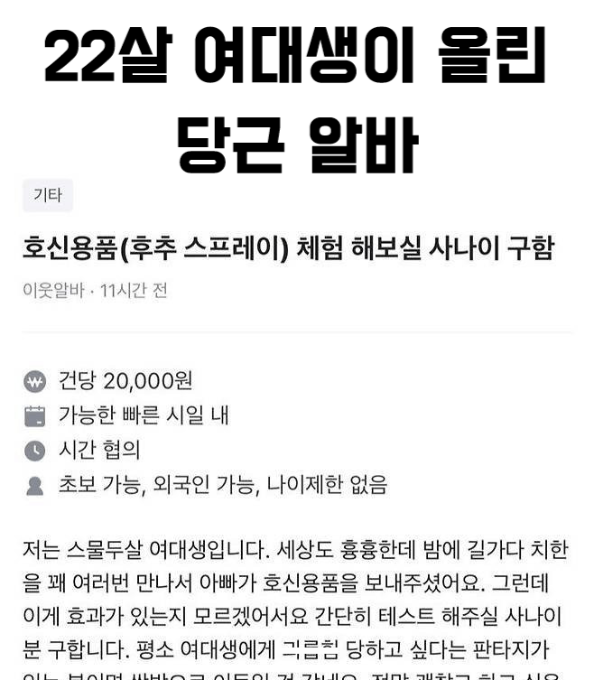 유머22살 여대생이 올린 당근 알바위키뉴스 기자입력북마크공유가글자크기프린트댓글22살 여대생이 올린 당근 알바 지원자 수 ㅋㅋ취향에 따라선 포상일지도.. 위키뉴스 기자[email protected]카카오톡페이스북트위터밴드URL복사