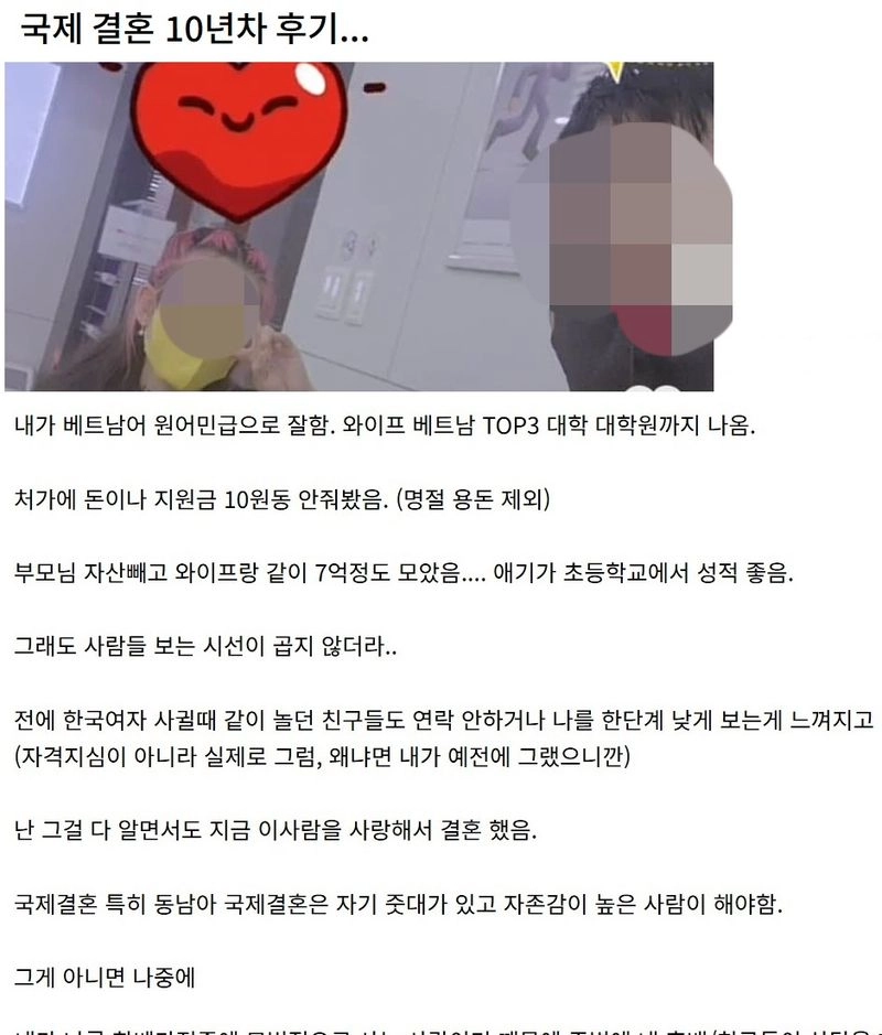 국제결혼 특히 동남아 국제결혼은 자기 줏대가 있고 자존감이 높은 사람이 해야함.