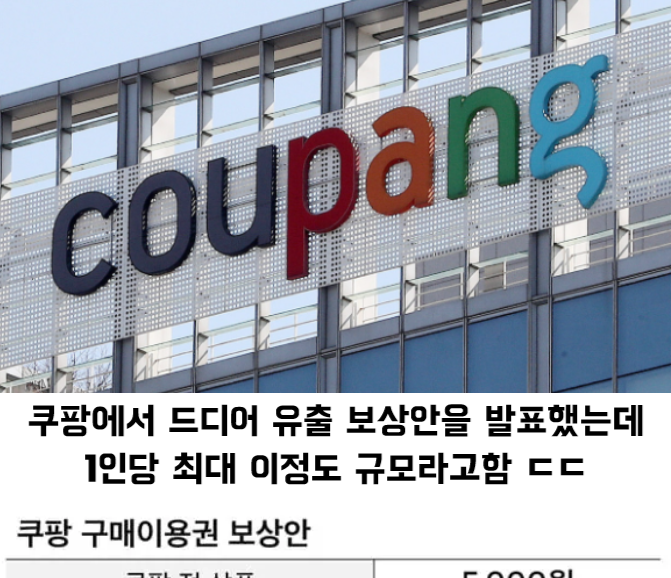 유머쿠팡 유출 보상안 드디어 떴다위키뉴스 기자입력북마크공유가글자크기프린트댓글 내년 1월 15일부터 순차적 지급쿠팡 전 상품과 쿠팡이츠·트래블·알럭스 구매이용권와우·일반·탈퇴 고객 모두 보상 시행 위키뉴스 기자[email protected]카카오톡페이스북트위터밴드URL복사
