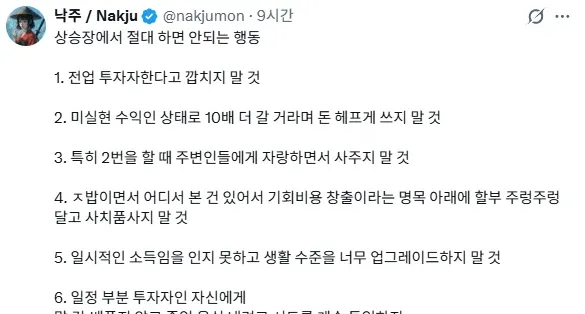유머주식 상승장에 절대 하면 안되는 행동 7가지위키뉴스 기자입력북마크공유가글자크기프린트댓글주식 상승장에 절대 하면 안되는 행동 7가지위키뉴스 기자[email protected]카카오톡페이스북트위터밴드URL복사