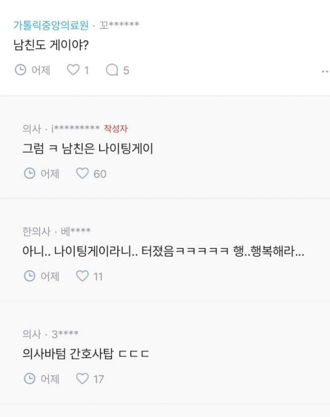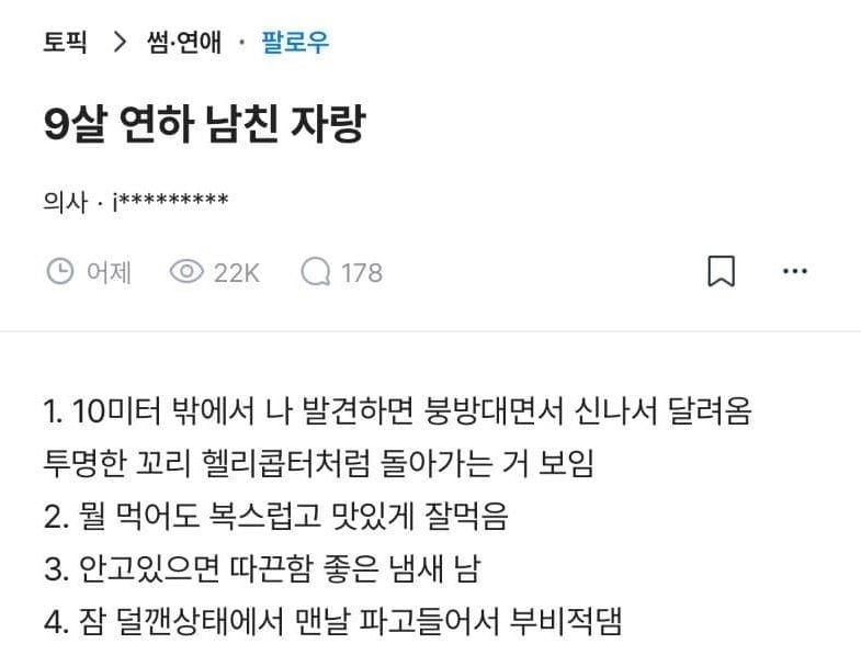 유머블라인드 댓글 난리난 9살 연하 간호사 남친 인증하는 의사위키뉴스 기자입력북마크공유가글자크기프린트댓글댓글 난리난 9살 연하 간호사 남친 인증하는 의사 위키뉴스 기자[email protected]카카오톡페이스북트위터밴드URL복사