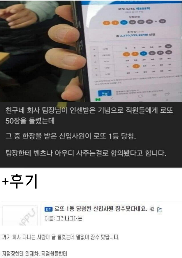 유머팀장이 사준 로또가 1등 당첨 (+후기)위키뉴스 기자입력북마크공유가글자크기프린트댓글 팀장이 사준 로또가 1등 당첨 (+후기)+후기위키뉴스 기자[email protected]카카오톡페이스북트위터밴드URL복사