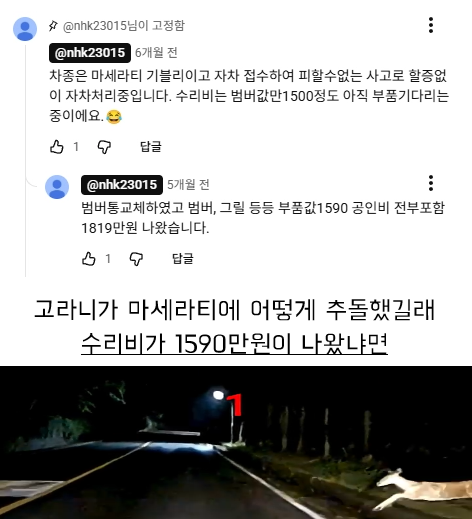 유머마세라티 고라니 추돌사고위키뉴스 기자입력북마크공유가글자크기프린트댓글 마세라티 고라니 추돌사고 [영상 제일 아래 첨부]아래 영상 첨부 위키뉴스 기자[email protected]카카오톡페이스북트위터밴드URL복사