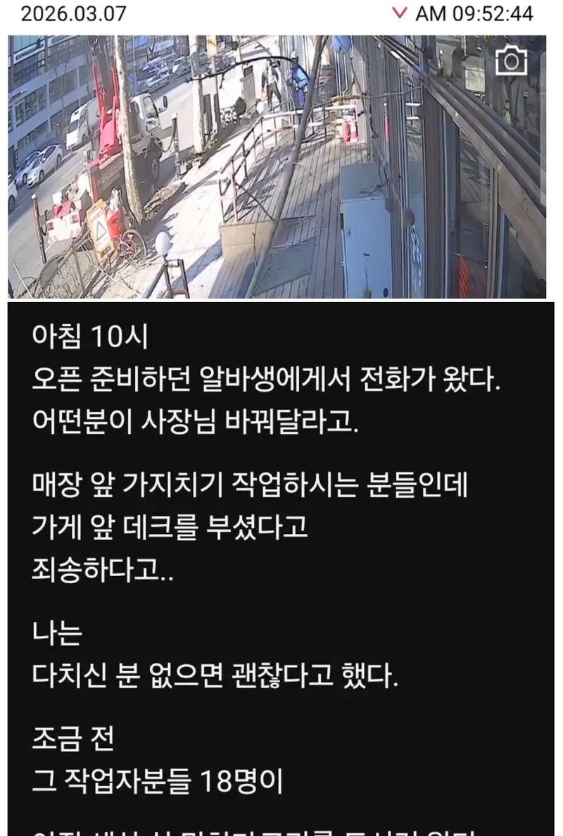 리와인드뉴스실수로 가게 앞 데크 부순 업체위키뉴스 기자입력북마크공유가글자크기프린트댓글 실수로 가게 앞 데크 부순 업체 훈훈하게 마무리 위키뉴스 기자[email protected]카카오톡페이스북트위터밴드URL복사