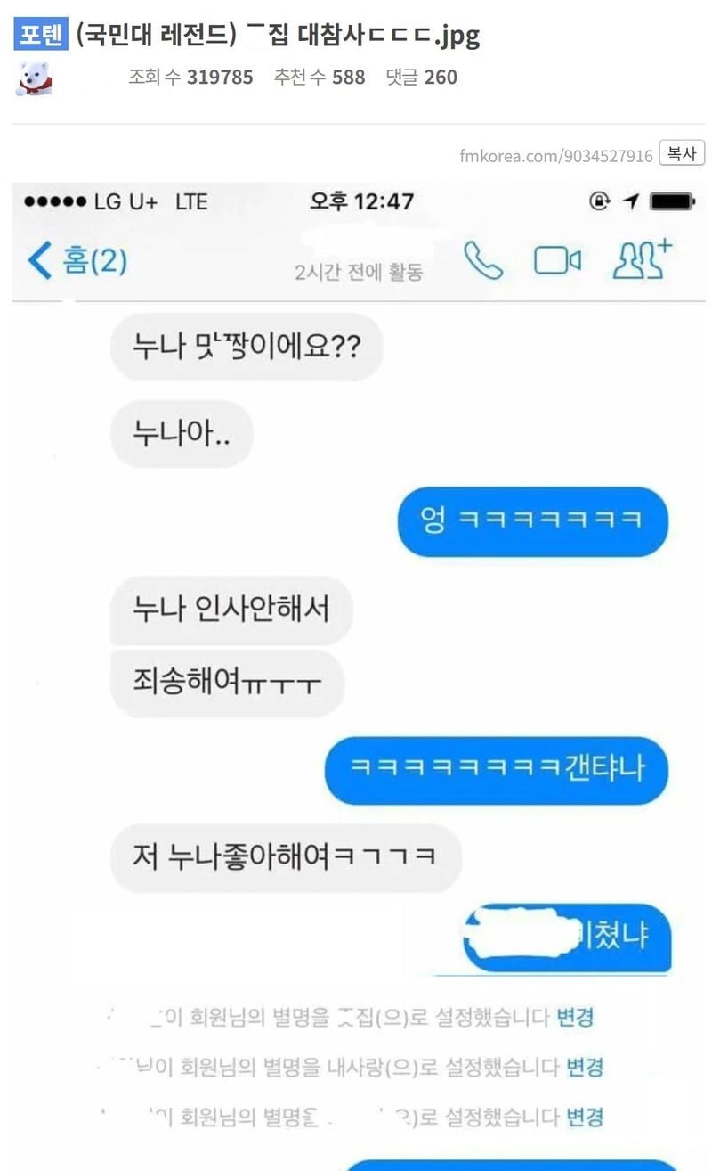 리와인드뉴스(국민대 레전드) ㅈ집 대참사ㄷㄷㄷ.jpg위키뉴스 기자입력북마크공유가글자크기프린트댓글 (국민대 레전드) ㅈ집 대참사ㄷㄷㄷ.jpg 학교 여선배 별명을 'ㅈ집'으로 저장했다가 들킴 ㄷㄷㄷ 위키뉴스 기자[email protected]카카오톡페이스북트위터밴드URL복사