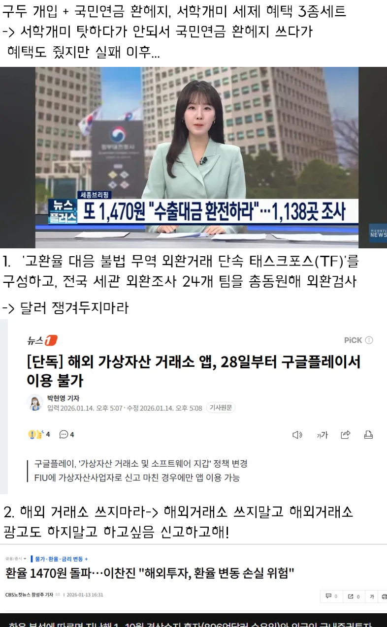 -> 서학개미 탓하다가 안되서 국민연금 환헤지 쓰다가 혜택도 줬지만 실패 이후...