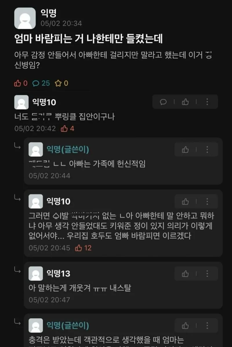 유머엄마가 바람피는 걸 알게 되었다위키뉴스 기자입력북마크공유가글자크기프린트댓글 엄마가 바람피는 걸 알게 되었다 위키뉴스 기자[email protected]카카오톡페이스북트위터밴드URL복사