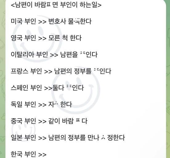 남편이 바람 폈을 때 국가별 아내의 반응