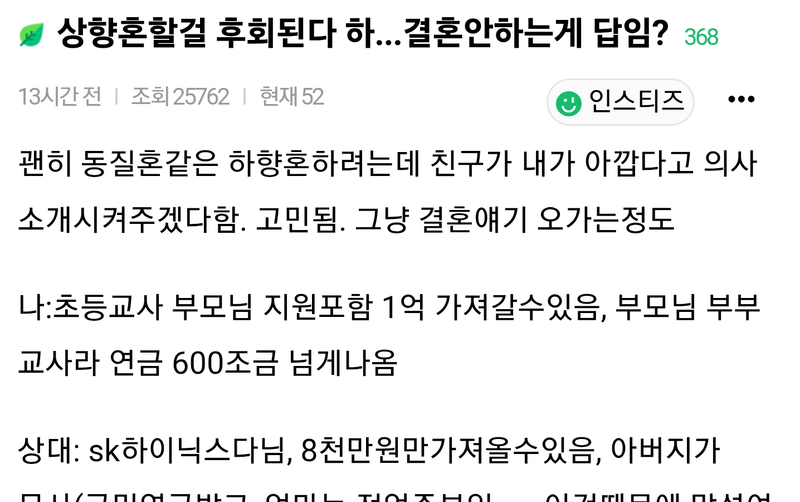 유머돈 없는 sk하이닉스 남자와 결혼하기 싫다는 초등학교 여교사위키뉴스 기자입력북마크공유가글자크기프린트댓글 돈 없는 sk하이닉스 남자와 결혼하기 싫다는 초등학교 여교사 위키뉴스 기자[email protected]카카오톡페이스북트위터밴드URL복사