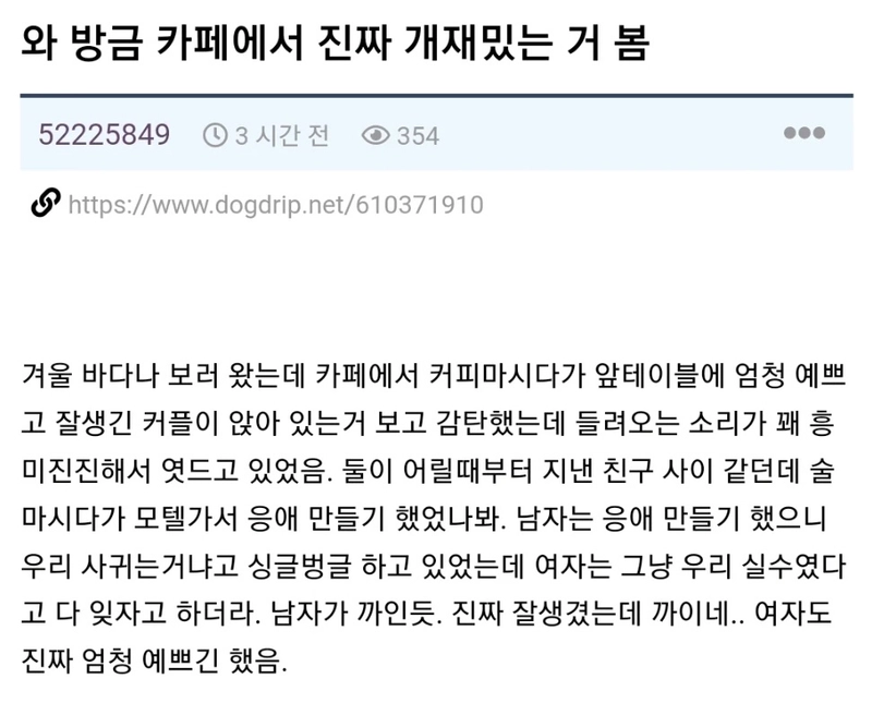 유머와 방금 카페에서 진짜 개재밌는 거 봄위키뉴스 기자입력북마크공유가글자크기프린트댓글와 방금 카페에서 진짜 개재밌는 거 봄 위키뉴스 기자[email protected]카카오톡페이스북트위터밴드URL복사