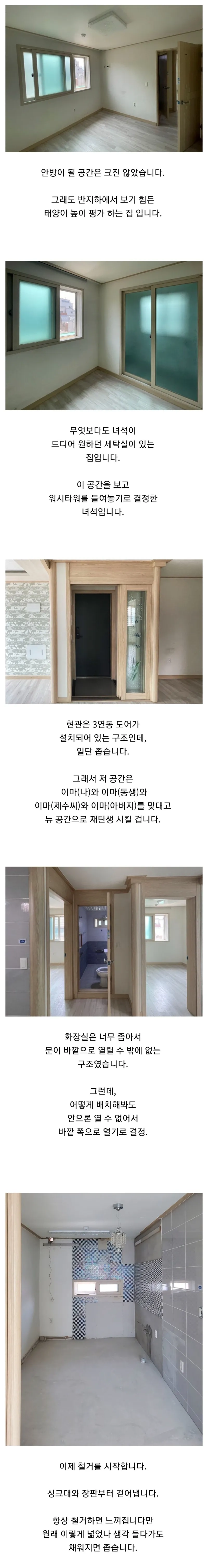 유머동생 14평 빌라 셀프 리모델링 해준 형.. 대박 ㄷㄷ위키뉴스 기자입력북마크공유가글자크기프린트댓글동생 14평 빌라 셀프 리모델링 해준 형.. 대박 ㄷㄷ 위키뉴스 기자[email protected]카카오톡페이스북트위터밴드URL복사