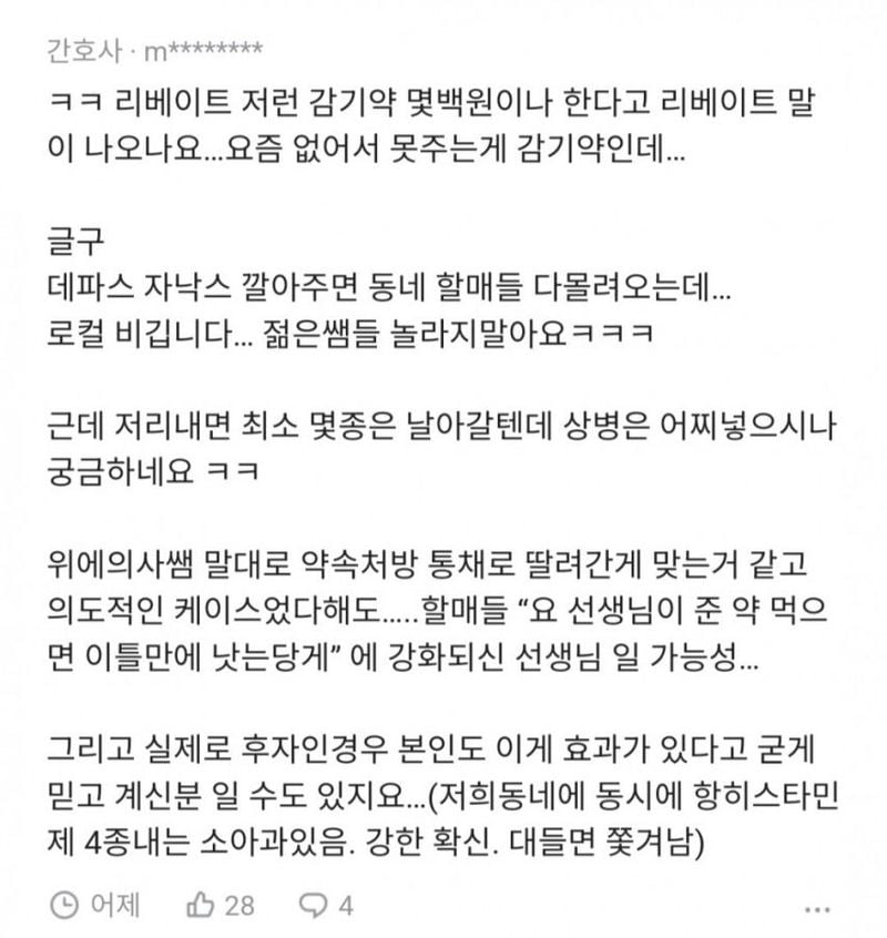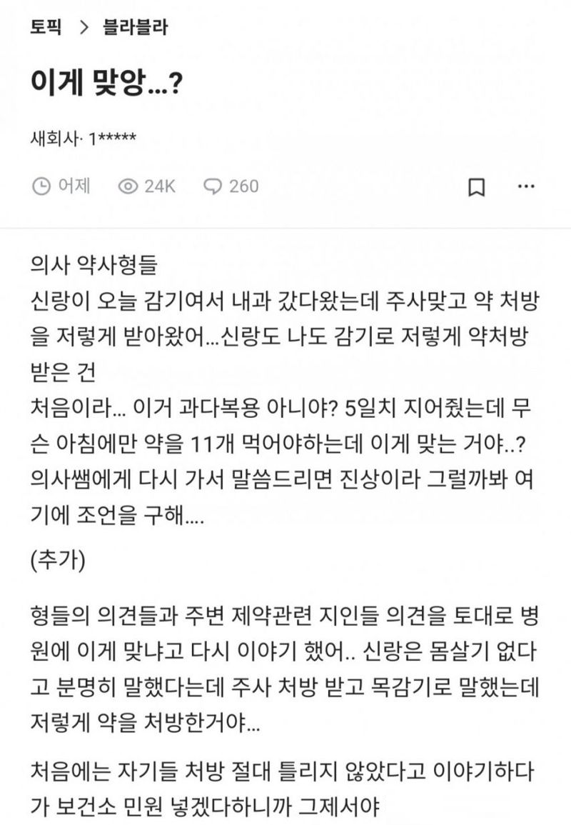 유머신랑이 감기여서 내과 갔다왔는데 이게 맞아...?위키뉴스 기자입력북마크공유가글자크기프린트댓글 신랑이 감기여서 내과 갔다왔는데 이게 맞아...? 감기는 병원가면 7일이면 낫고, 집에서 푹 쉬면 일주일이면 낫는 병 아닌가요? ㄷㄷㄷ위키뉴스 기자[email protected]카카오톡페이스북트위터밴드URL복사