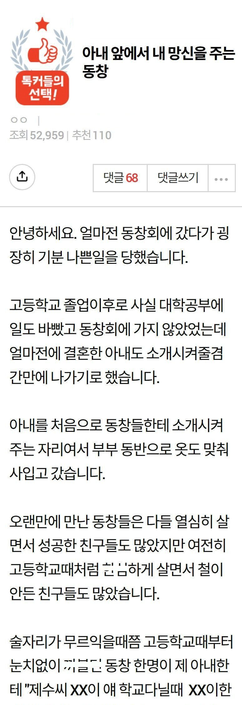 유머아내 앞에서 내 망신을 주는 동창위키뉴스 기자입력북마크공유가글자크기프린트댓글 아내 앞에서 내 망신을 주는 동창위키뉴스 기자[email protected]카카오톡페이스북트위터밴드URL복사