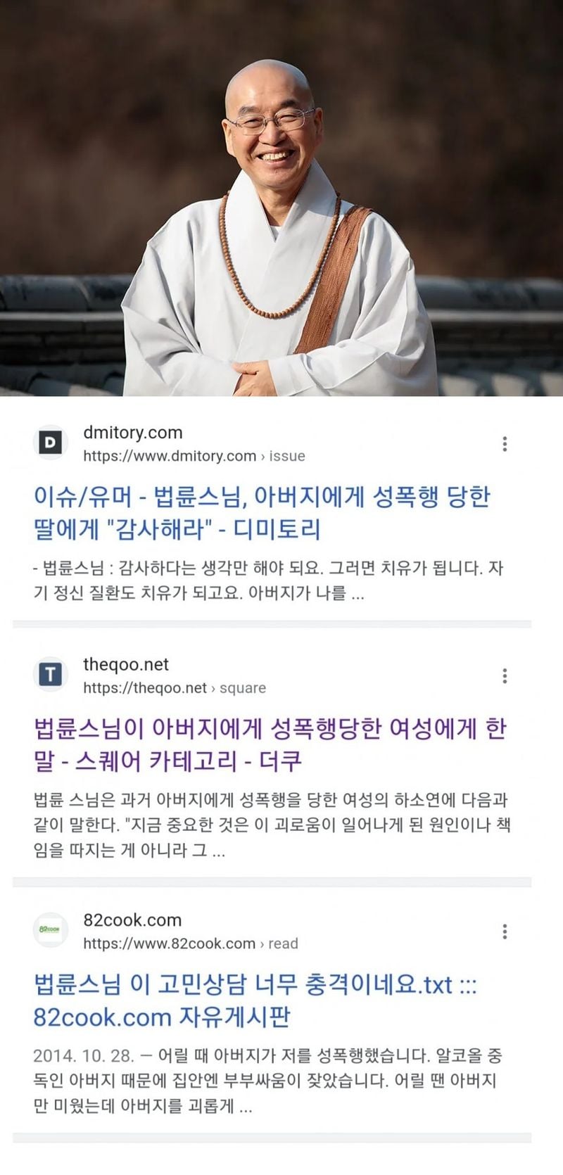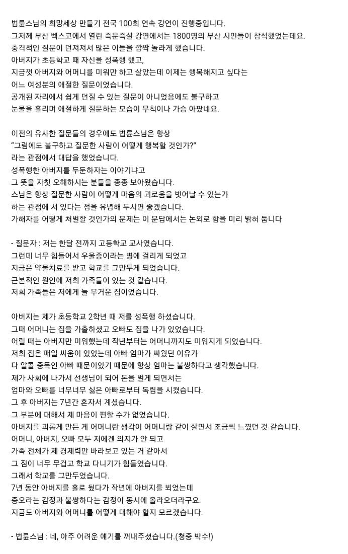유머자기를 성폭ㅎ한 아버지에게도 감사하라는 법륜스님위키뉴스 기자입력북마크공유가글자크기프린트댓글자기를 성폭행한 아버지에게도 감사하라는 법륜스님 위키뉴스 기자[email protected]카카오톡페이스북트위터밴드URL복사