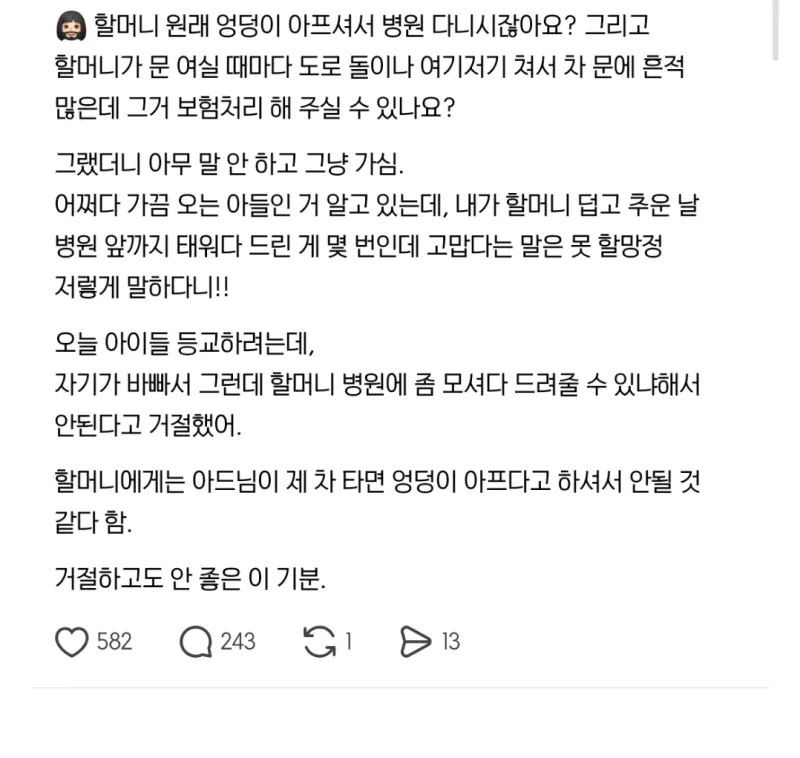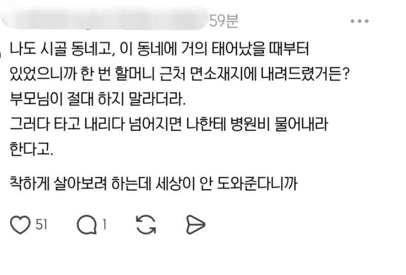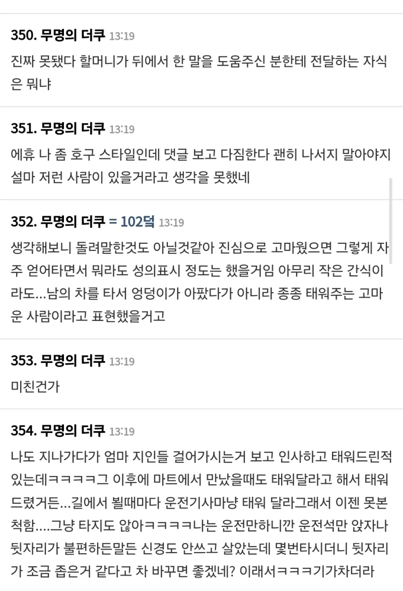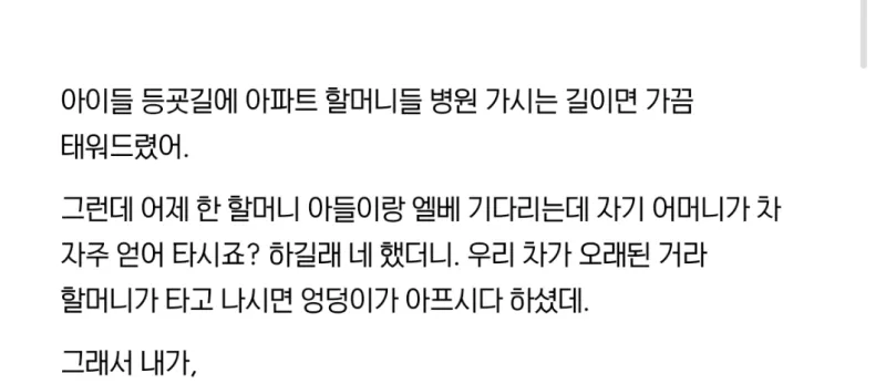 유머동네 할머니들 병원에 몇번 태워다 드렸는데...위키뉴스 기자입력북마크공유가글자크기프린트댓글동네 할머니들 병원에 몇번 태워다 드렸더니… 위키뉴스 기자[email protected]카카오톡페이스북트위터밴드URL복사