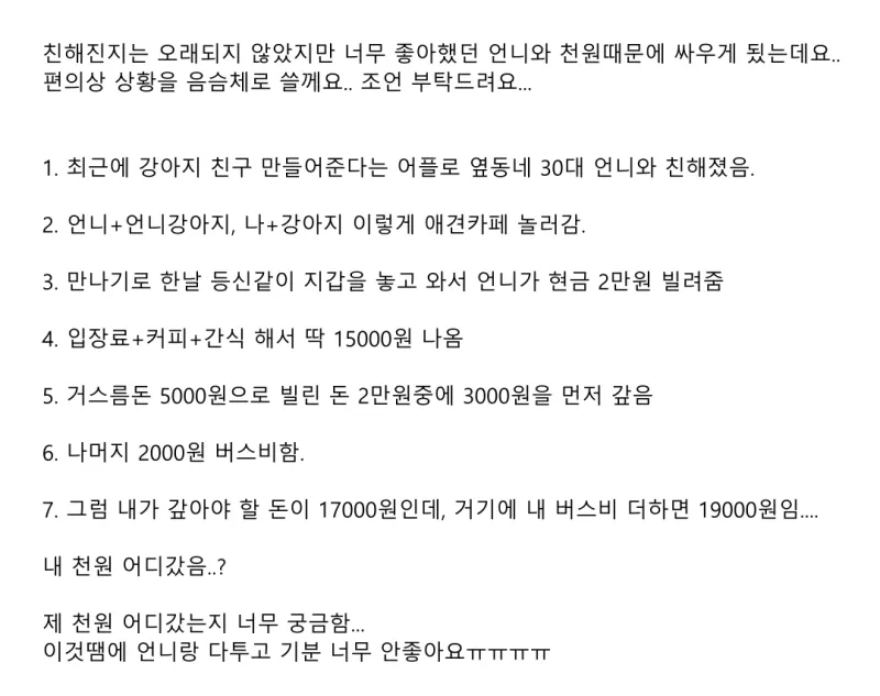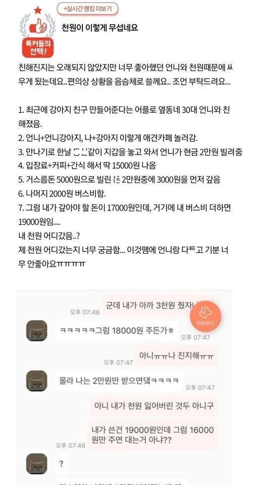 리와인드뉴스천원이 이렇게 무섭네여....ㄷㄷ위키뉴스 기자입력북마크공유가글자크기프린트댓글 천원이 이렇게 무섭네여....ㄷㄷ 위키뉴스 기자[email protected]카카오톡페이스북트위터밴드URL복사