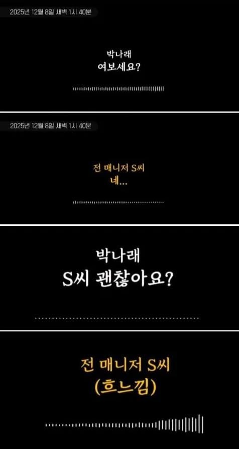 오늘 뜬 박나래와 매니저 녹ㅊ록 캡쳐, 요약 (새벽에 대화했다는 그 날)