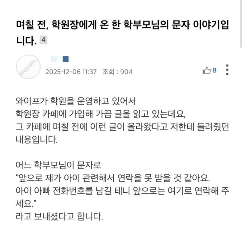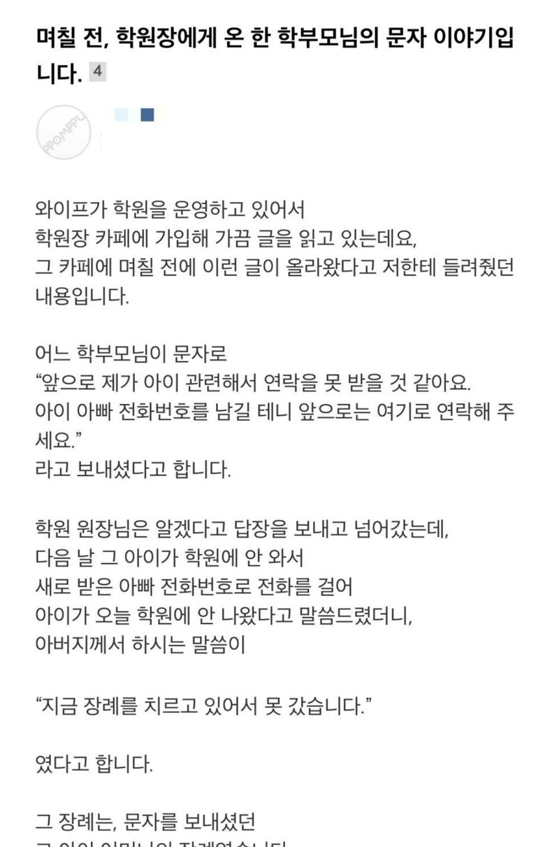 유머학원 원장에게 앞으로는 남편에게 연락해달라고 문자보낸 학부모위키뉴스 기자입력북마크공유가글자크기프린트댓글학원 원장에게 앞으로는 남편에게 연락해달라고 문자보낸 학부모.jpg 위키뉴스 기자[email protected]카카오톡페이스북트위터밴드URL복사