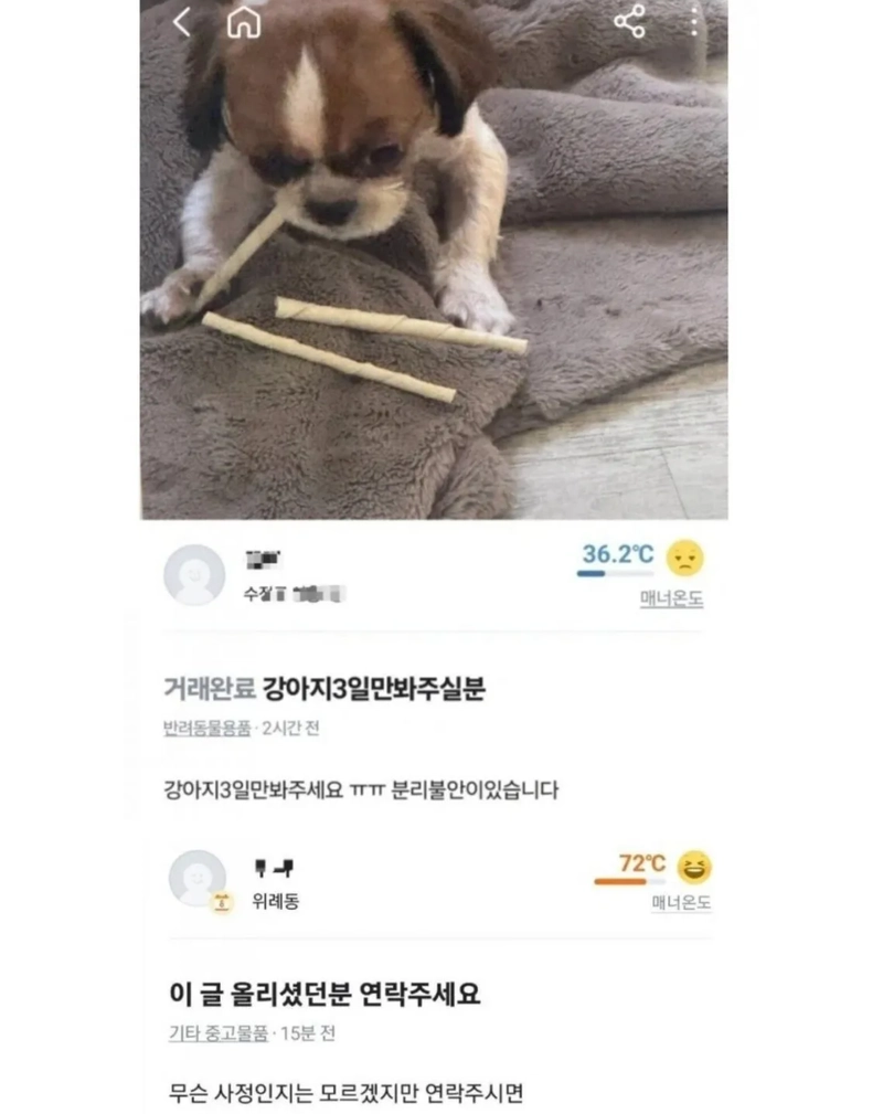 리와인드뉴스당근) 강아지 3일만 봐 주실 분위키뉴스 기자입력북마크공유가글자크기프린트댓글 당근) 강아지 3일만 봐 주실 분 위키뉴스 기자[email protected]카카오톡페이스북트위터밴드URL복사