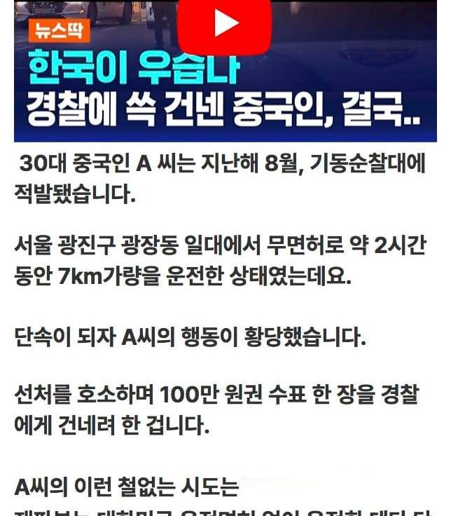 유머한국 경찰에게 백만원 뇌물 시도한 중국인 (+결말)위키뉴스 기자입력북마크공유가글자크기프린트댓글한국 경찰에게 백만원 뇌물 시도한 중국인 (+결말) ㅋㅋㅋㅋ 위키뉴스 기자[email protected]카카오톡페이스북트위터밴드URL복사