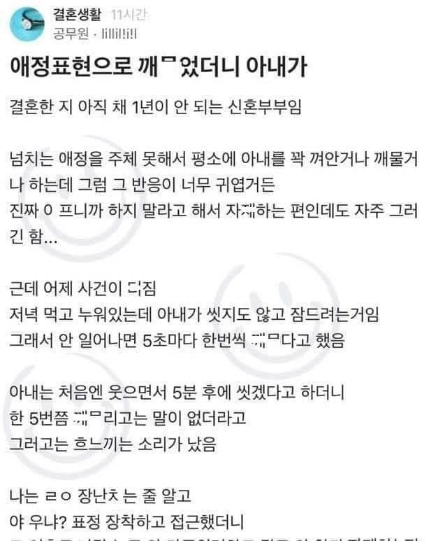 리와인드뉴스애정표현으로 깨ㅁ었더니 아내가..blind위키뉴스 기자입력북마크공유가글자크기프린트댓글 애정표현으로 깨ㅁ었더니 아내가..blind 위키뉴스 기자[email protected]카카오톡페이스북트위터밴드URL복사