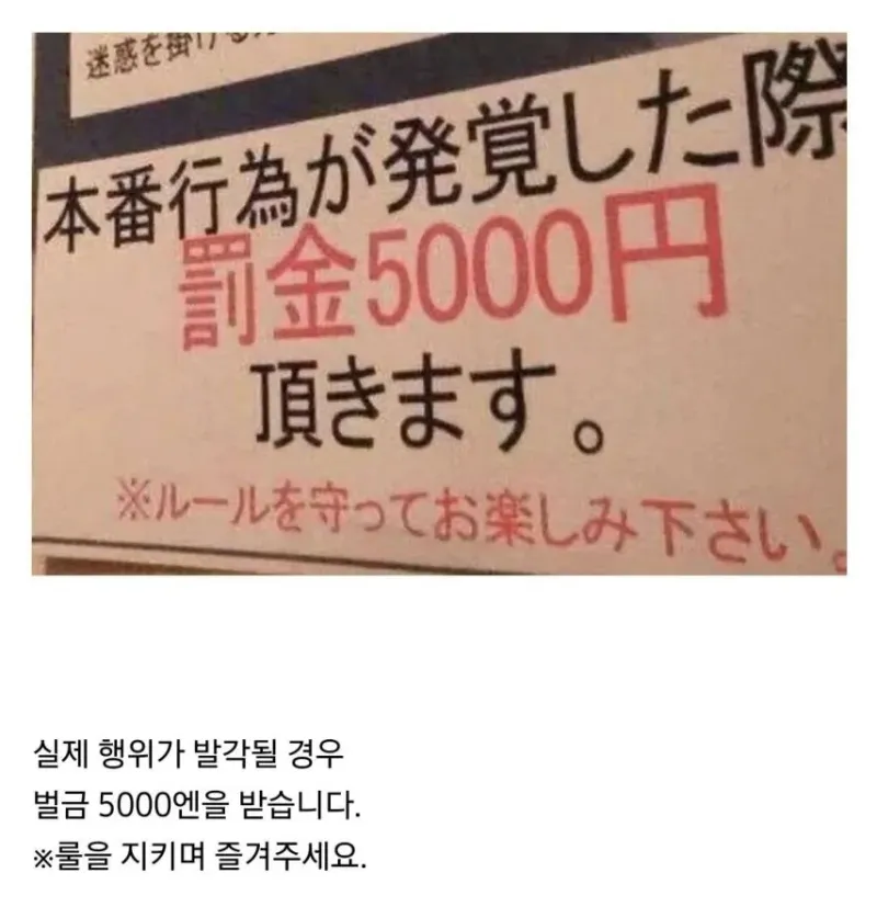 성행위 금지인 업소의 경고문