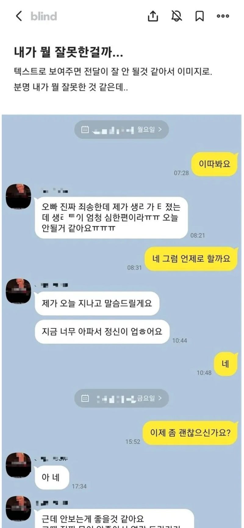 리와인드뉴스소개팅 전 연락... 내가 뭘 잘못한 걸까..jpg위키뉴스 기자입력북마크공유가글자크기프린트댓글 소개팅 전 연락... 내가 뭘 잘못한 걸까..jpg 위키뉴스 기자[email protected]카카오톡페이스북트위터밴드URL복사