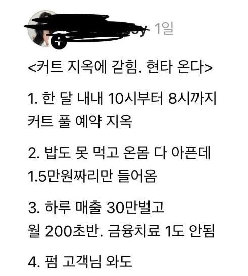 리와인드뉴스남자 고객 때문에 현타온다는 미용사 누나위키뉴스 기자입력북마크공유가글자크기프린트댓글 남자 고객 때문에 현타온다는 미용사 누나 위키뉴스 기자[email protected]카카오톡페이스북트위터밴드URL복사