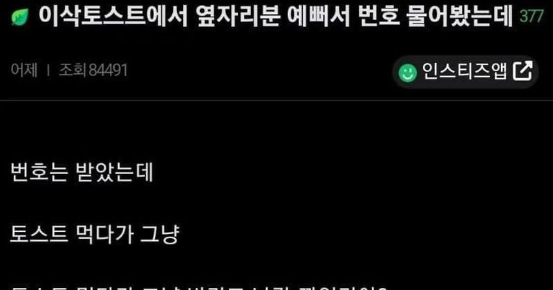 리와인드뉴스이삭토스트에서 번호 땄는데..+후기위키뉴스 기자입력수정북마크공유가글자크기프린트댓글 이삭토스트에서 번호 땄는데..+후기 위키뉴스 기자[email protected]카카오톡페이스북트위터밴드URL복사