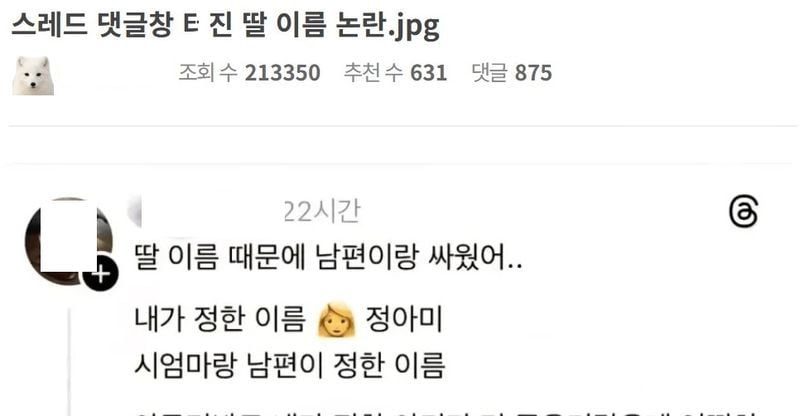 리와인드뉴스스레드 댓글창 ㅌ진 딸 이름 논란.jpg위키뉴스 기자입력북마크공유가글자크기프린트댓글 스레드 댓글창 터진 딸 이름 논란.jpg 위키뉴스 기자[email protected]카카오톡페이스북트위터밴드URL복사