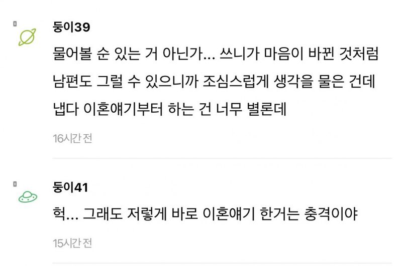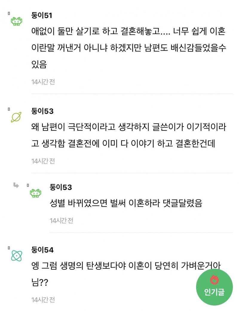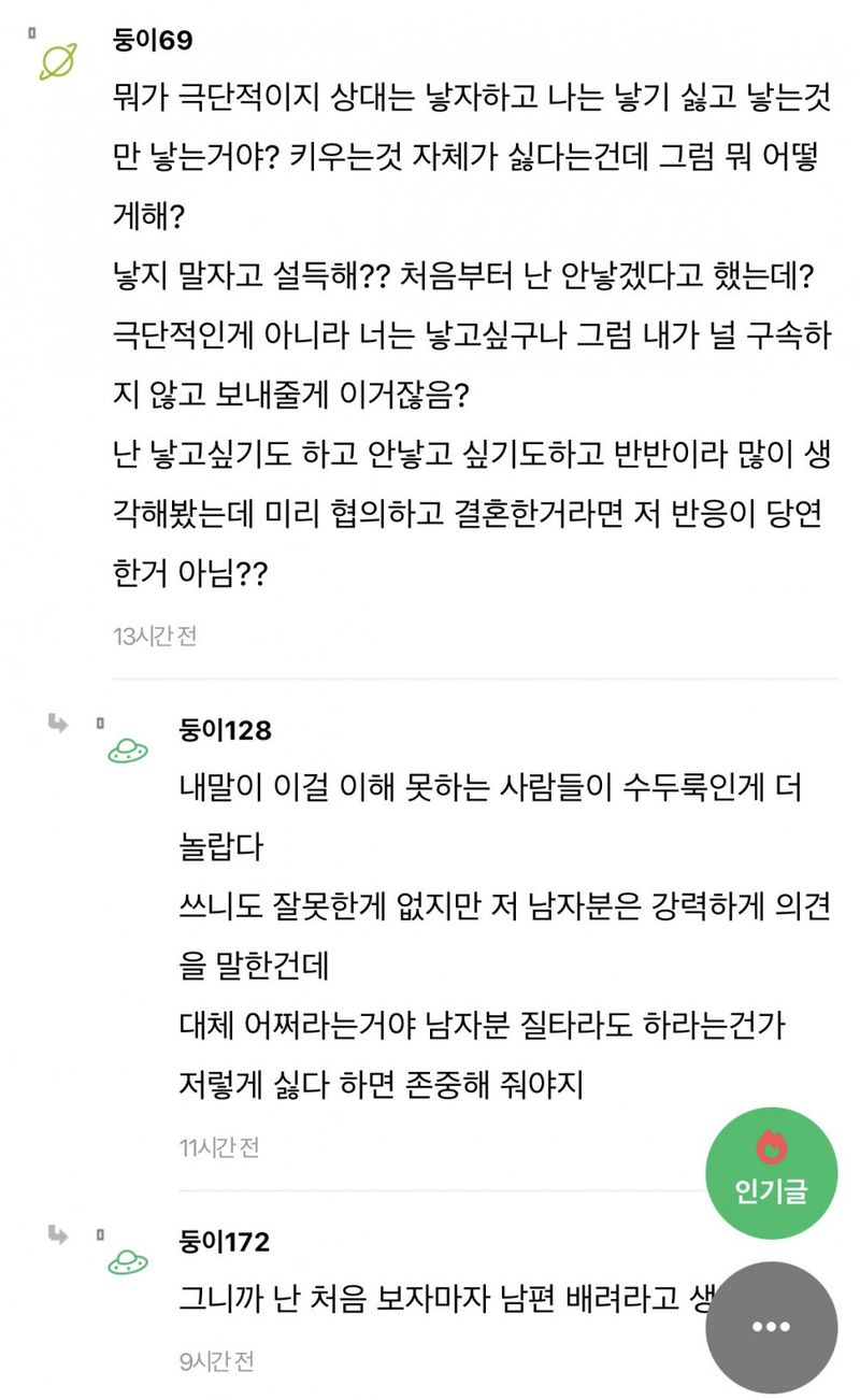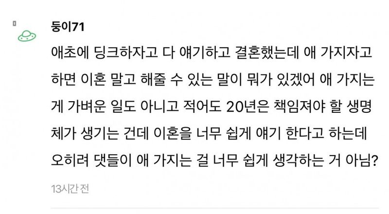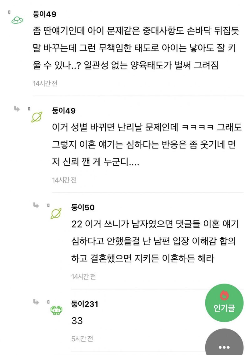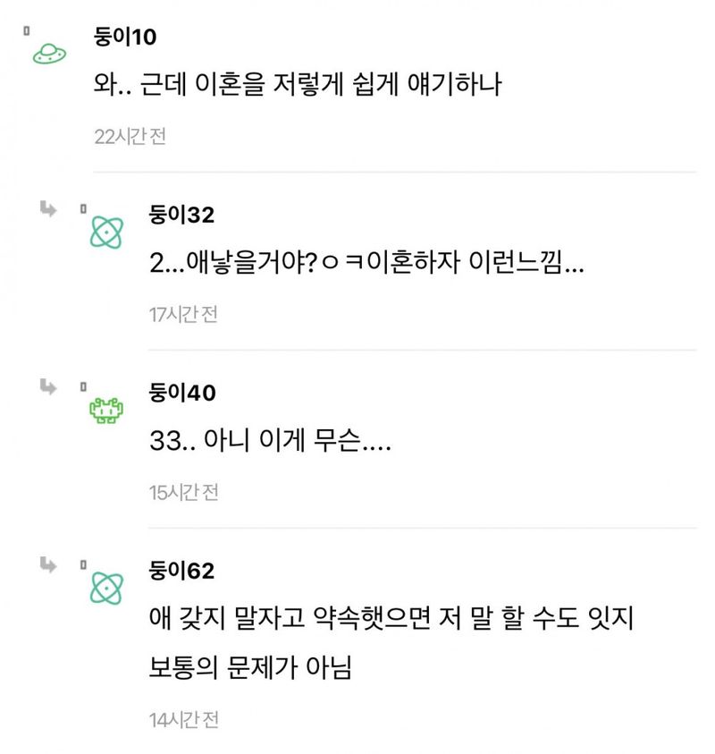 유머남편한테 애 갖고싶다했는데 남편이 이혼해줄수 있대위키뉴스 기자입력북마크공유가글자크기프린트댓글남편한테 애 갖고싶다했는데 남편이 이혼해줄수 있대 위키뉴스 기자[email protected]카카오톡페이스북트위터밴드URL복사