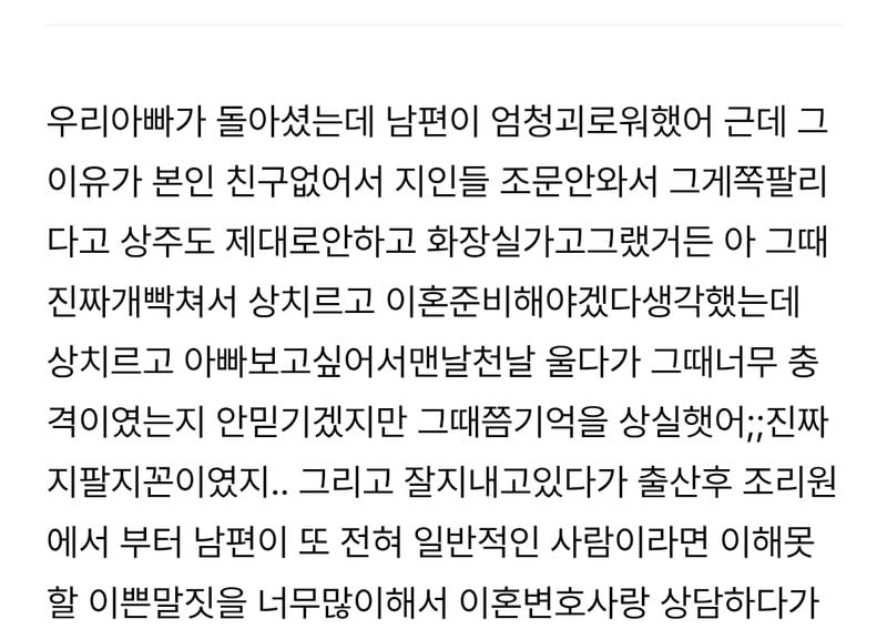 유머아빠 장례식장에서 혐ㅇ스럽게 행동한 남편위키뉴스 기자입력북마크공유가글자크기프린트댓글아빠 장례식장에서 혐오스럽게 행동한 남편 위키뉴스 기자[email protected]카카오톡페이스북트위터밴드URL복사