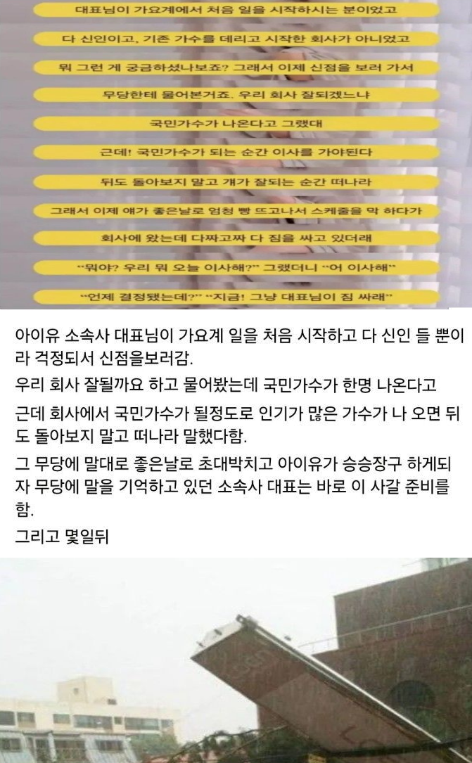 유머아이유 소속사대표가 무당에게 들었던말위키뉴스 기자입력북마크공유가글자크기프린트댓글아이유 소속사대표가 무당에게 들었던말위키뉴스 기자[email protected]카카오톡페이스북트위터밴드URL복사