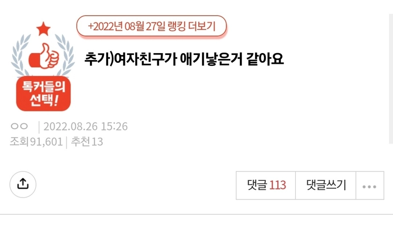 유머여자친구가 애기낳은거 같아요..위키뉴스 기자입력북마크공유가글자크기프린트댓글여자친구가 애기낳은거 같아요.. 위키뉴스 기자[email protected]카카오톡페이스북트위터밴드URL복사