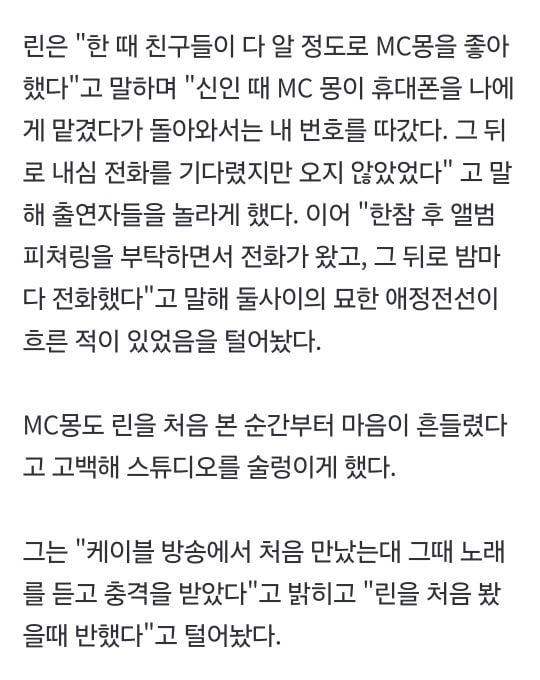 MC몽과 린이 서로 좋아하던 사이였다고 함...