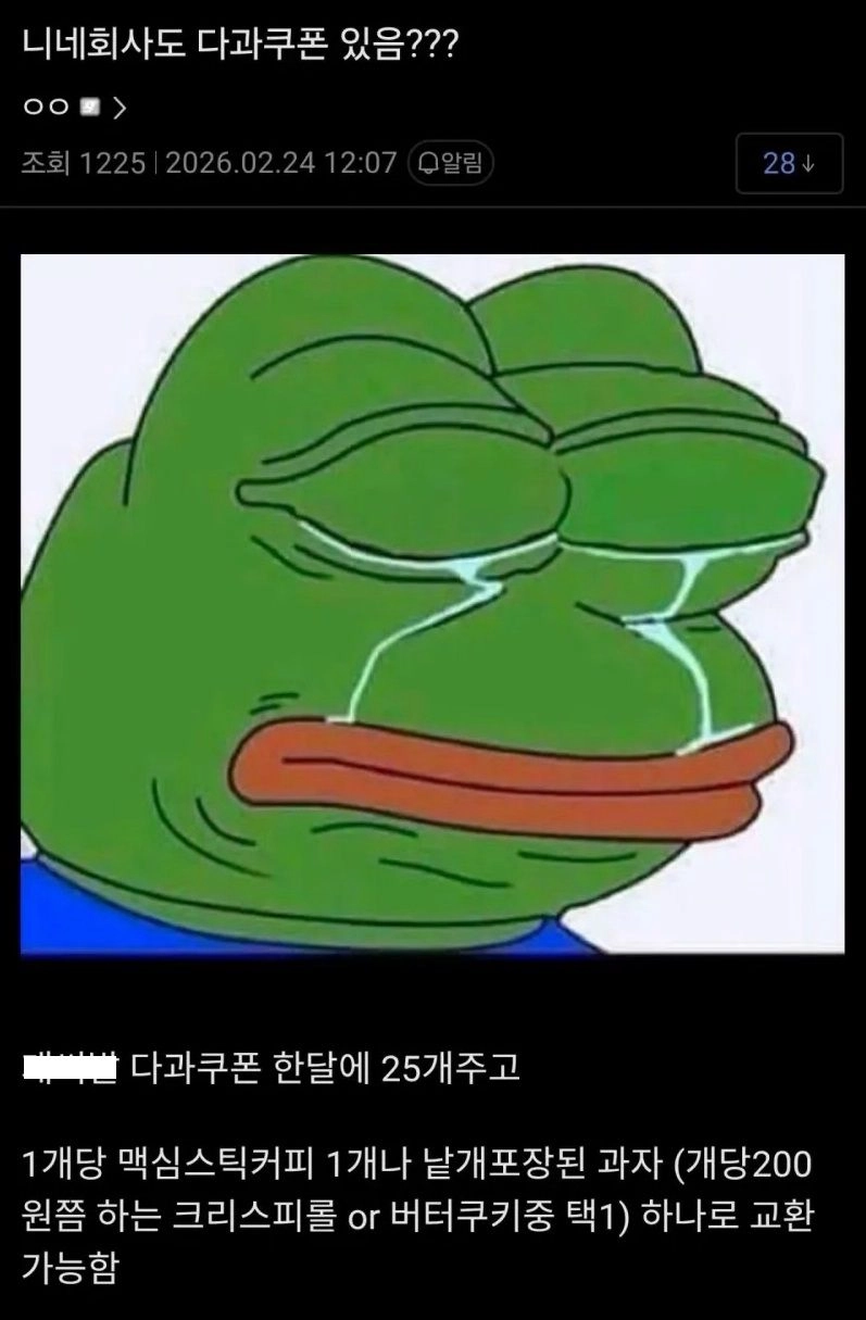 리와인드뉴스니네회사도 다과쿠폰 있냐는 ㅈ소갤러.jpg위키뉴스 기자입력북마크공유가글자크기프린트댓글 니네회사도 다과쿠폰 있냐는 ㅈ소갤러.jpg 이건 사장말도 들어보자 ㅋㅋㅋ 위키뉴스 기자[email protected]카카오톡페이스북트위터밴드URL복사
