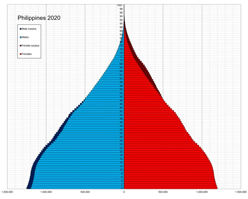 필리핀의 인구구조 지도를 보면 전형적인 피라미드형 구조로