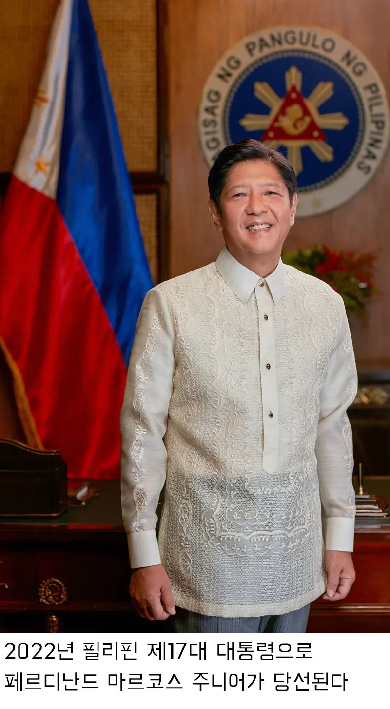 2022년 필리핀 제17대 대통령으로 페르디난드 마르코스 주니어가 당선된다