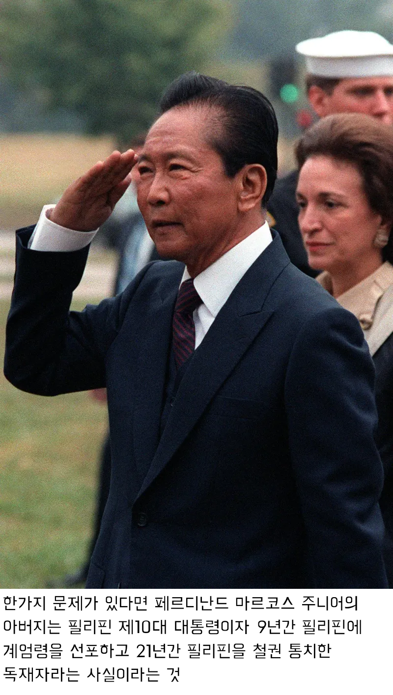 한가지 문제가 있다면 페르디난드 마르코스 주니어의 아버지는 필리핀 제10대 대통령이자
