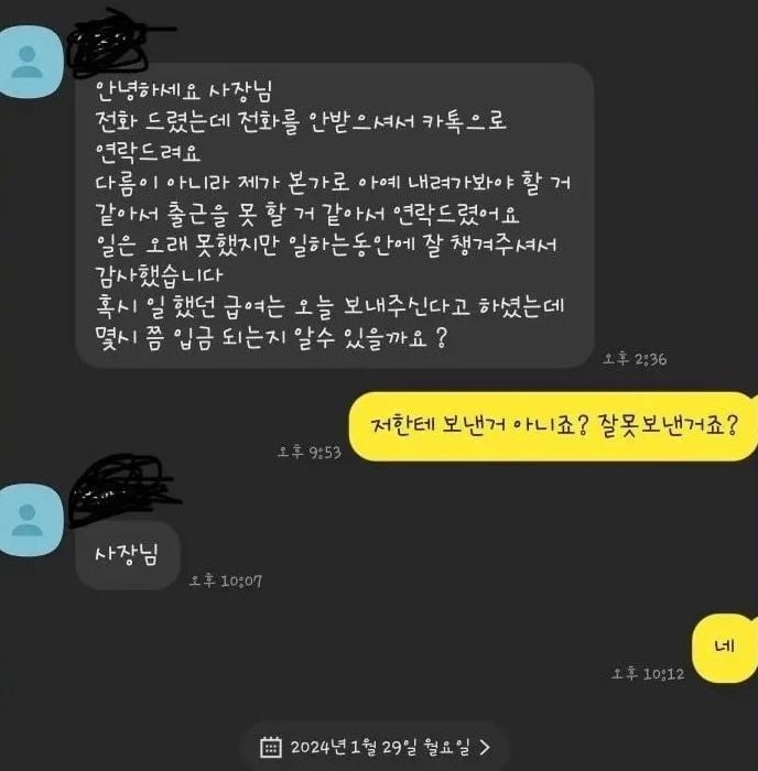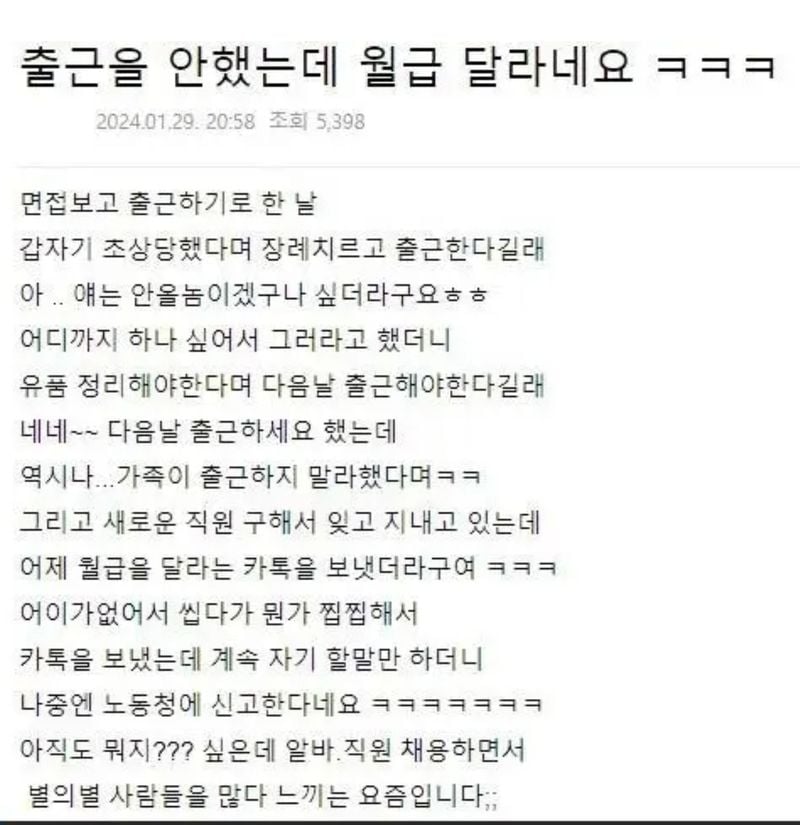 유머출근도 안했는데 월급 달라며 문자 보낸 이유 ㄷㄷ위키뉴스 기자입력북마크공유가글자크기프린트댓글출근을 안했는데 월급을 달라네요 위키뉴스 기자[email protected]카카오톡페이스북트위터밴드URL복사