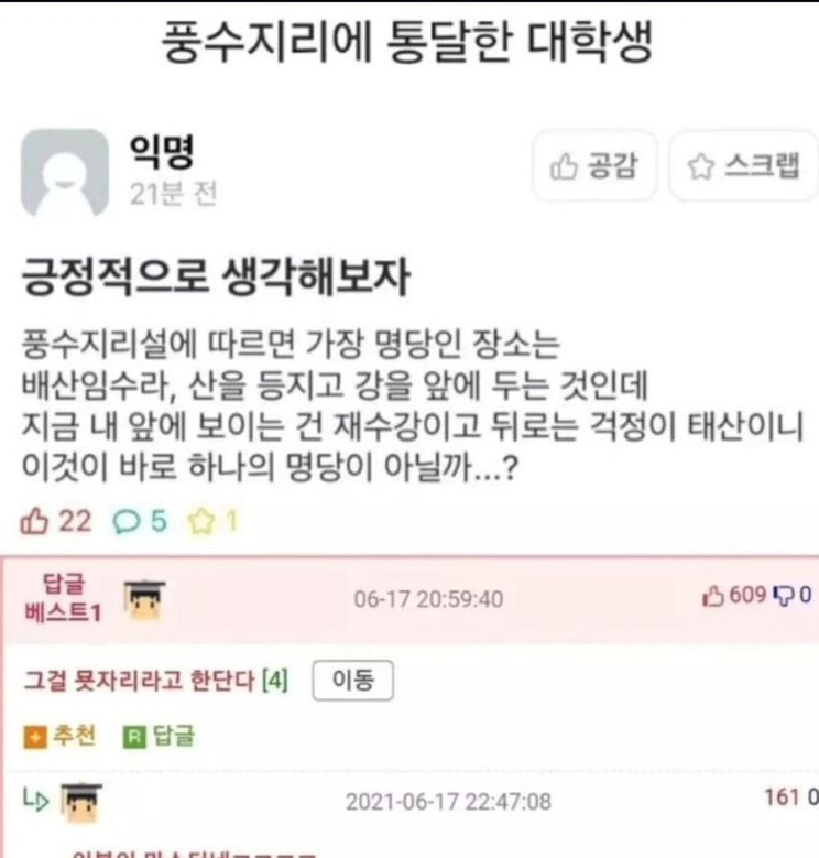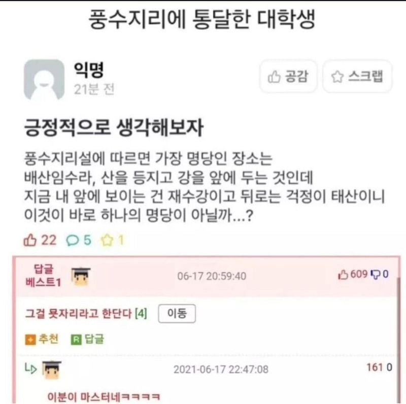 풍수지리에 통달한 대학생