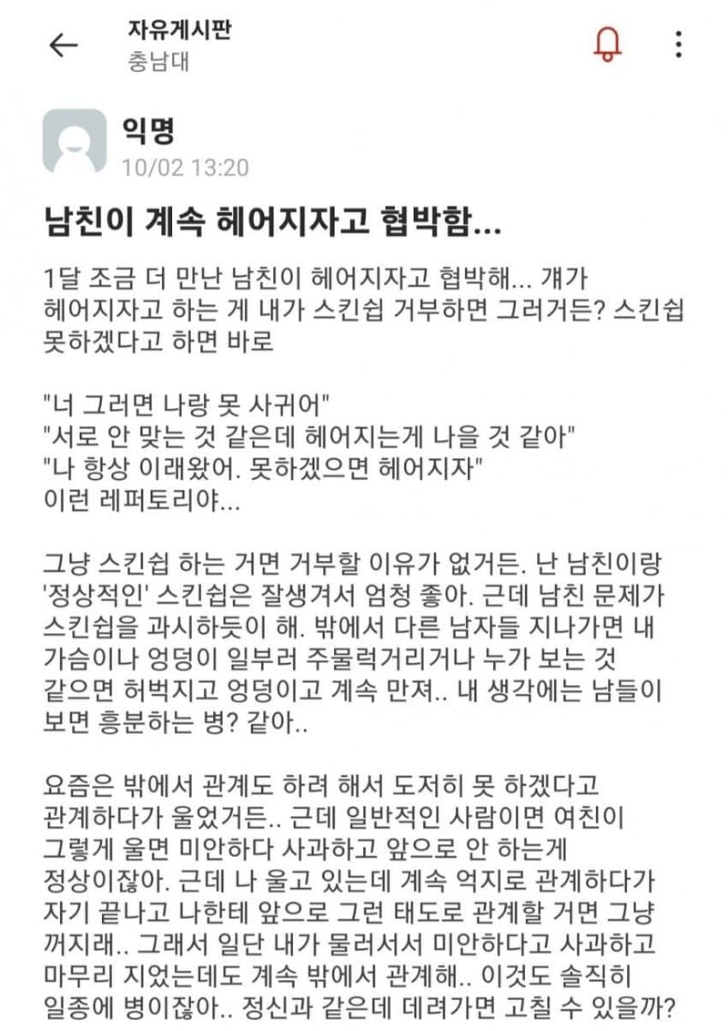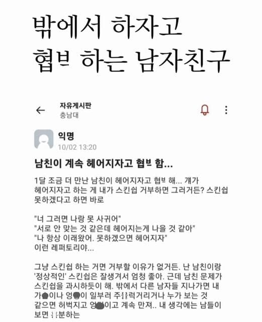밖에서 하자고 협ㅂ하는 남친