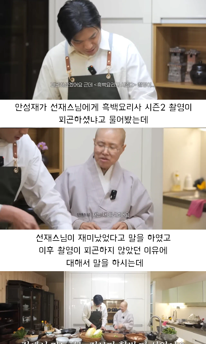 유머선재스님이 흑백요리사 촬영이 피곤하지 않았던 이유위키뉴스 기자입력북마크공유가글자크기프린트댓글선재스님이 흑백요리사 촬영이 피곤하지 않았던 이유 절에서 기도하는게 더 빡세서 ㅋㅋ 위키뉴스 기자[email protected]카카오톡페이스북트위터밴드URL복사