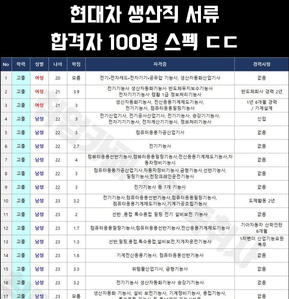 유머현대차 생산직 서류 합격자 100명 스펙 ㄷㄷ위키뉴스 기자입력북마크공유가글자크기프린트댓글현대차 생산직 서류 합격자 100명 스펙 ㄷㄷ 위키뉴스 기자[email protected]카카오톡페이스북트위터밴드URL복사